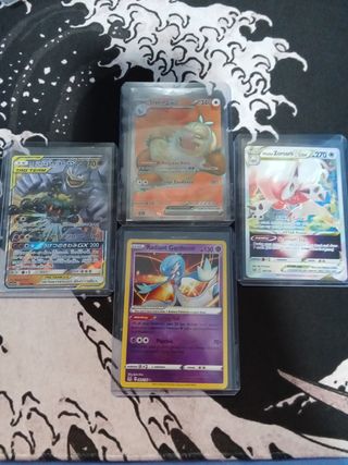 Conjunto de cartas de Pokémon. - Varias cartas de Pokémon. - Incluye figuras de Pokémon. - Una carta promocional dorada.