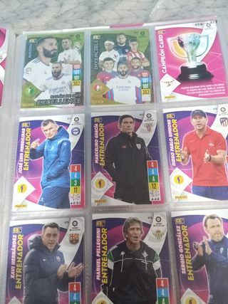 Se venden 6 albunes de Adrenalyn la colección 18-19 tiene pocas cartas, la 21-22 está completa al 100%,la 22-23 está a unas 5 cartas de estar al 100%,la 23-24 le faltan muchas y la 24-25 está casi completa con casi todos los balones de oro menos la card fantástica. Se pueden comprar cartas por separado