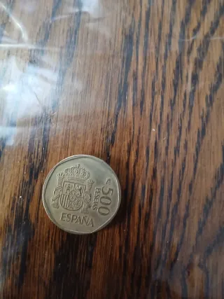 Moneda conmemorativa de 500 pesetas de España. Escucho ofertas - Diseño del escudo de España. - Inscripción ESPAÑA y 500 PESETAS.