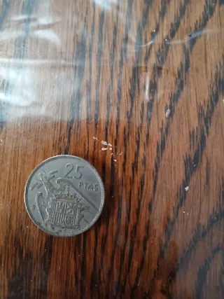 Moneda antigua de 25 pesetas. Escucho ofertas - Diseño con escudo. - Inscripción 25 PTAS.