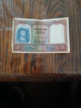 Antiguo billete del Banco de España con valor de 500 pesetas, emitido en Madrid el 25 de abril de 1931. Escucho ofertas - Denominación: Quinientas Pesetas. - Fecha de emisión: 25 de abril de 1931. - Lugar de emisión: Madrid. - Número de serie: 0227165.