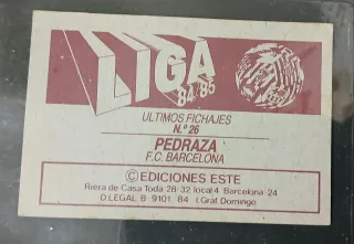 Cromo Ult.Fich.Pedraza FCBarcelona 84/85 Sin pegar