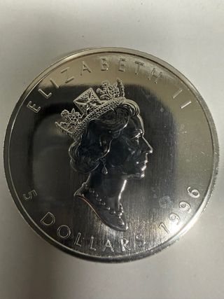 Moneda de plata canadiense Maple Leaf de 1 onza. 2011 - Diseño de la hoja de arce. - Acuñada en plata pura. -Peso bruto. : 31,00 g -Pureza. : 999,90 * Monedas circuladas. Algunas unidades pueden presentar manchas de leche, un fenómeno que no afecta a su pureza. 💰Hay mas monedas en venta, por comprar 20 se ofrece un turbo de monedas 📦 Envío certificado por Pago cómodo y seguro mediante : 💳Bizum o transferencia bancaria. ❌ No se acepta regateo, ya que se trata de un cambio de divisas + porcentaje por la cantidad/ metal precioso. 📹 Se hace vídeo personalizado del material, peso y comprobación antes
