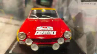 Réplica detallada del Fiat 124 Abarth Spider que compitió en el Rallye TAP Portugal en 1974. - Modelo a escala del coche de rally.1/24 - Decoración con los patrocinadores de la época. - Réplica del dorsal número 2.