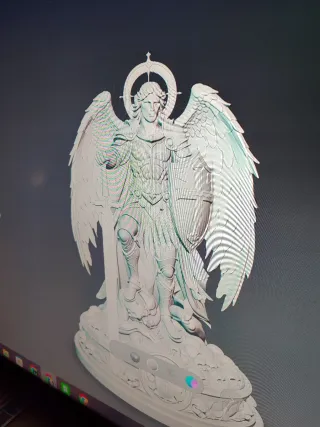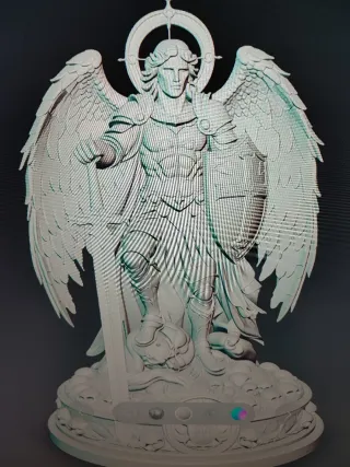 Figura de San Miguel Arcángel.y gato con luna - Diseño detallado de Juan Pablo.