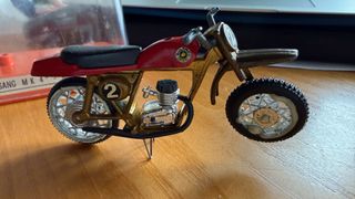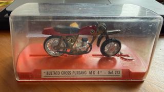 Miniatura de moto Bultaco Cross Pursang MK4 años 70 Aunque ha estado en su caja original, las ruedas han sufrido un poco por el calor. - Modelo: MK 4 - Referencia: 273 - Color: Rojo y dorado