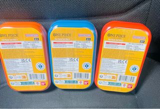 Tres latas coleccionables del juego de cartas One Piece, todas precintadas. 40 euros por lata,las tres 115. - Contiene cartas selladas de One Piece. - Diseño con personajes icónicos de la serie. EN Madrid trato en mano.