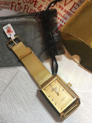 Precioso reloj de boutique Rommanel completamente dorado caja de Reloj rectangular modelo unisex sin estrenar- fina bisutería no puedes mojarlo -está sin estrenar aprovecha para hacer regalitos de cumpleaños para ti misma o para San Valentín visita todo mi perfil