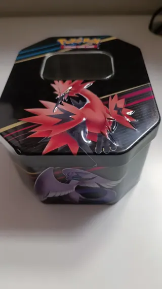 Lata grande de Pokémon, ideal para coleccionistas o para guardar tus cartas. - Diseño con el personaje Zapdos. - Material metálico.
