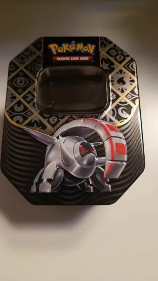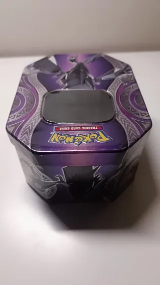 Lata coleccionable de Pokémon Necrozma ideal para guardar tus cartas o como objeto decorativo. Su diseño es llamativo y único. - Lata metálica. - Diseño de Pokémon. - Tamaño grande.