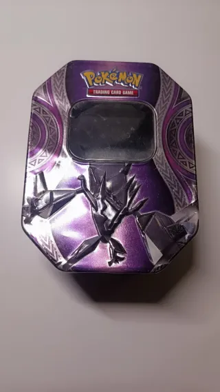 Lata grande de Pokémon, vacía y lista para ser reutilizada o coleccionada. Presenta un diseño llamativo con el personaje Giratina. - Lata metálica. - Diseño de Pokémon con Giratina. - Vacía.