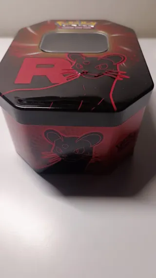 Esta es una lata grande de Pokémon, ideal para coleccionistas o para guardar tus cartas. - Diseño con Gyarados. - Material metálico. - Ventana transparente en la tapa.