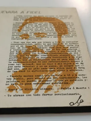 Carta escrita por Ernesto Che Guevara a Fidel Castro. - Escrita en La Habana. - Fecha: Año de la Agricultura. - Contenido: Reflexiones sobre la Revolución Cubana, la partida del Che y su compromiso con la lucha anti-imperialista. - Firmada: Hasta la victoria siempre. Patria o muerte!