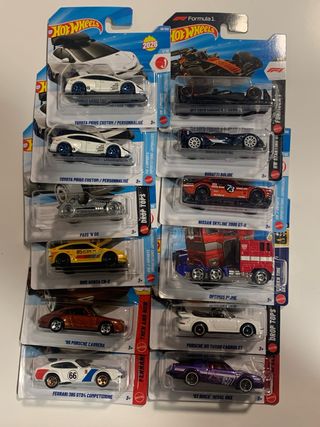 Precio por unidad Colección de coches Hot Wheels de varios modelos. - Toyota Prius Custom / Personnalisé - Pass 'N Go - 1985 Honda CR-X - '96 Porsche Carrera - Ferrari 365 GTB4 Competizione - McLaren Formula 1 Team Car - Bugatti Bolide - Nissan Skyline 2000 GT-R - Optimus Prime - Porsche 911 Turbo Cabriolet - '87 Buick Regal GNX