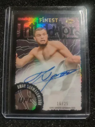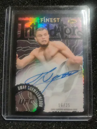 Tarjeta de colección de Umar Nurmagomedov. - Edición Topps Finest. - Autógrafo certificado on card - Limitada a 16 de 25. - Incluye sello UFC.