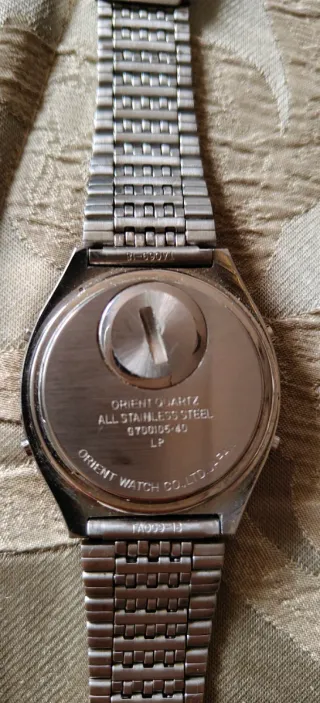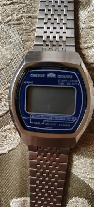Reloj de pulsera digital vintage de la marca Orient. - Modelo Quartz. - Correa metálica. - Pantalla digital.