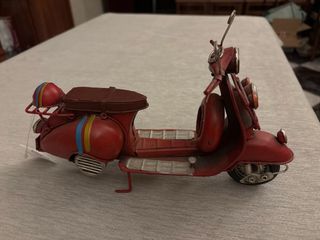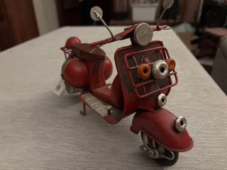 Preciosa moto decorativa de latón con un acabado en color rojo. - Diseño clásico de scooter. - Detalles metálicos. - Ideal para coleccionistas o como adorno. - Conserva la etiqueta ideal para regalar. - Su precio original fue de 25€
