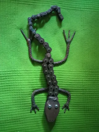 Original figura decorativa de lagarto, creada artesanalmente con cadena de moto. - Pieza única - Materiales metálicos