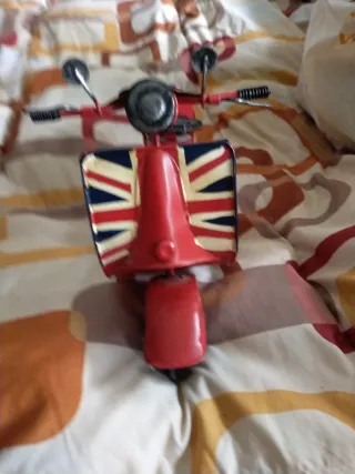 Juguete antiguo con forma de moto Vespa, decorado con la bandera del Reino Unido. Impecable nueva no le falta un detalle ideal para coleccionista - Diseño retro. - Colores vivos.