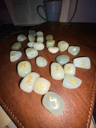 Runas Nórdicas de Adivinación. Viene un librito y los significados de cada runa, pero nunca lo he utilizado porque no utilizarlas para la adivinación