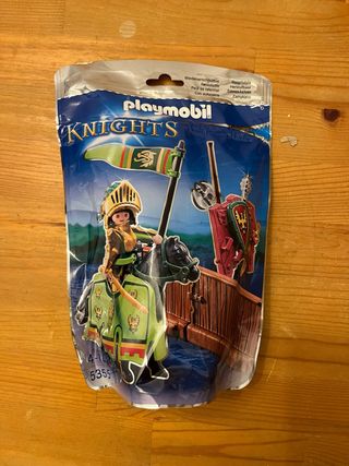 Set de Playmobil de la serie Caballeros. - Figura de caballero a caballo. - Incluye estandarte y escudo. - Referencia 5355. Tengo 25 unidades. Cada una lo vendo por 25€