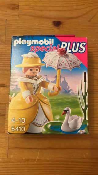 Set de Playmobil especial PLUS. - Figura de dama con vestido amarillo. - Incluye sombrero y sombrilla. - Cisne y estanque. - Referencia: 5410.