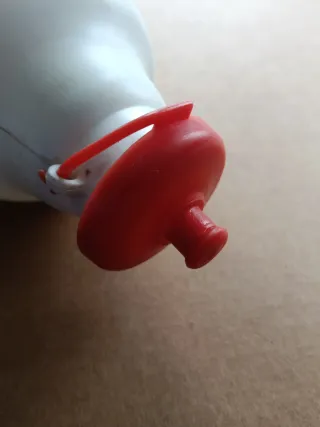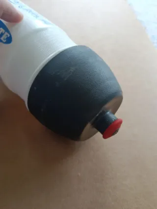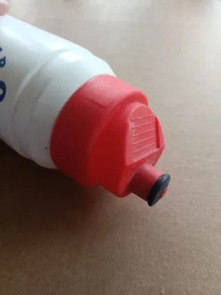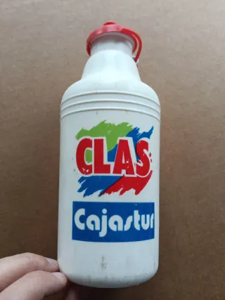 Bidón del equipo Clas-Cajastur de 1990. Un objeto de colección para los aficionados. - Diseño blanco con logo. - Tapón rojo.