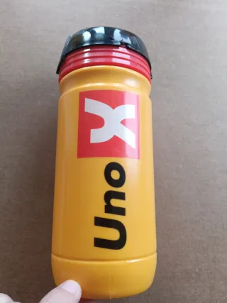 Bidón de equipo profesional Uno X. Ideal para llevar tus bebidas. - Color amarillo. - Diseño con logo de Uno X.