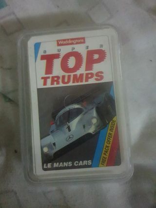 Juego de cartas Super Top Trumps de Waddingtons, edición Le Mans Cars. - Incluye cartas con coches de carreras. - Temática de Le Mans Cars.