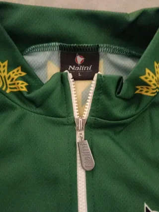 Maillot del equipo Caja Rural de la temporada 2001. Diseño verde y blanco con el logo del equipo. - Logo de Caja Rural. - Logo de RuralV@. - Logo de Nalini. - Logo de Pinarello.