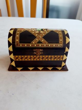 Por tema agenda, avisar antes de comprar. Dibujos geométricos. Madera, hueso y nácar. Para guardar joyas o como pieza decorativa. Exterior pulido e interior de terciopelo. Elegancia artesanal. Perfecto excepto una pequeña muesca (ver foto) Dimensiones 7,5 x 13,5 x 9 cm. Ref.T2 #decoración,hoteles,hotelesrurales,cerámica,cobre,piedra,bronce,oro,plata,metal,aluminio,acero,resina,hierroforjado,hueso,nacar,artdeco,vintage,industrial,artesania,rustico,murales,maderamaciza,vintage,industrial,étnico,paredes,colgar,rastros,recuerdos,regalo,atrezzo,tiendasmoda,estilosdecorativos,casa,apartamento,salon,recibidor,comedor,habitacion