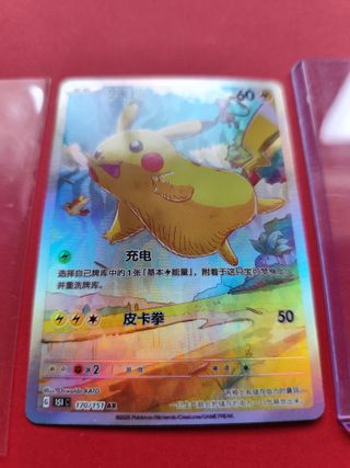Pikachu (151C 171) en perfecto estado, de mi colección personal. Me duele venderlo, pero necesito el dinero y no me queda otra. Si te lo llevas, te lo envío súper bien protegido, con el mismo cuidado con el que lo he guardado yo.