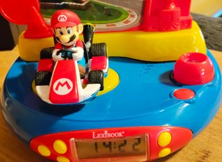 Reloj despertador con proyector de Mario Kart. Presenta a Mario en su kart. - Diseño inspirado en Mario Kart. - Figura de Mario con su kart. - Proyector de imágenes.