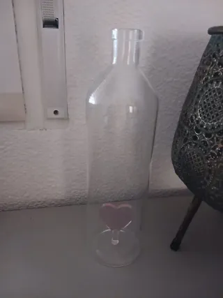 Botella de cristal con corazón rosa