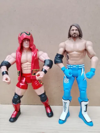 Vendo 2 figuras de AJ Styles, una auténtica leyenda del wrestling que este año entra en el Hall of Fame tras su retirada. ¡Pieza imprescindible para coleccionistas! 🔴 Figura AJ Styles etapa TNA Atuendo rojo con capucha (look clásico de sus inicios). Gran nivel de detalle y musculatura marcada. 🔵 Figura AJ Styles etapa más actual (WWE) Marca: Mattel Línea Basic Atuendo azul característico. 📏 Buen estado general, ideales para exposición o colección. 💰 Precio: 14e unidad/26e pack
