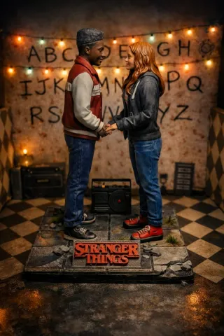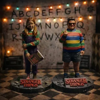 Se vende pack número 3 de la icónica serie de los hermanos Duffer "Stranger Things", compuesto por la pareja formada por Holly y Derek. Las miniaturas están impresas en resina de alta calidad, miden aproximadamente 10 cm de altura y están pintadas a mano. El decorado-diorama que aparece en la imagen no se incluye en el precio. Muchas gracias