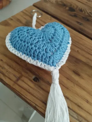 Llavero Corazón Crochet Azul y Blanco