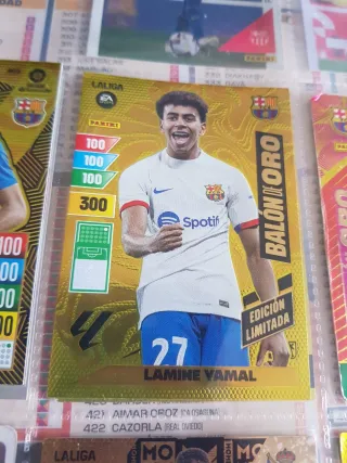 Tarjeta de colección de Lamine Yamal, edición especial Balón de Oro. - Diseño dorado. - Incluye Edición Limitada en la tarjeta. - Número 27 visible en la tarjeta.
