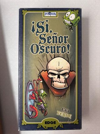 Juego de mesa Sí, Señor Oscuro! en su edición Caja Verde. - Ilustraciones de estilo caricaturesco. - Incluye componentes de juego. - Diseñado por Edge Entertainment.