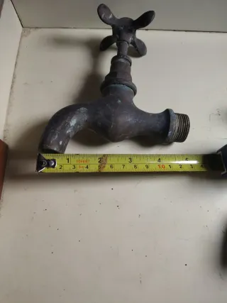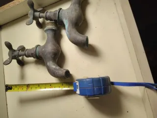 Conjunto de dos grifos antiguos, con un diseño clásico y robusto. No pierden agua, funcionan correctamente. - Fabricados en bronce. - Acabado con pátina de tiempo.
