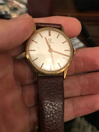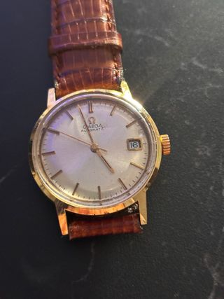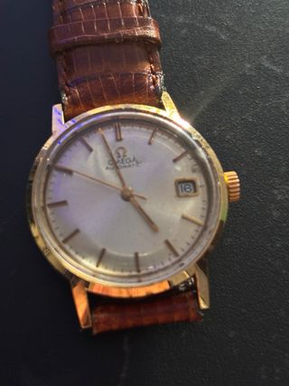 Elegante reloj Omega vintage automático con correa de piel Tiene un par de puntos muy pequeños en la esfera lo he intentado sacar el la última foto - Esfera plateada. - Ventana de fecha. - Caja dorada. -maquinaria automática 562 numero 23675341 Número en la tapa 1660163