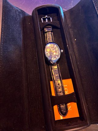 Elegante reloj Locman de fabricación italiana, con un diseño distintivo y detalles de alta calidad. - Esfera con textura y números arábigos. - Correa de piel negra con acabado cocodrilo. - Edición limitada. - Mecanismo automático. -esfera en fibra de carbono muy llamativo -estuche