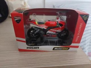 Réplica a escala 1:16 de la Ducati Desmosedici GP 2011 de Valentino Rossi. - Modelo: Ducati Desmosedici GP 2011. - Escala: 1:16. - Piloto: Valentino Rossi. - Marca: Motorama.