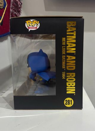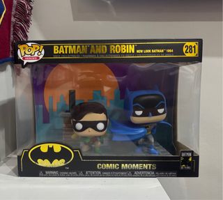 Figura Funko Pop de Batman y Robin, número 281, de la línea Comic Moments. Especial 80 años - Sin abrir - Ha estado siempre en un estante sin luz directa - Representa a Batman y Robin con su look de 1964. - Incluye el empaque original. - Parte de la colección Heroes de Funko Pop.