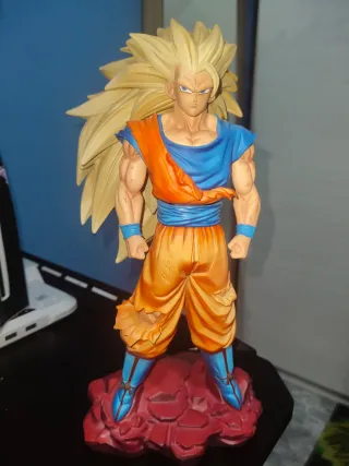 Figura de Goku en su transformación Super Saiyan 3. Mide 30 centímetros - Cabello rubio largo característico. - Ropa de artes marciales azul y naranja.