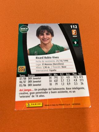 Carta Ricky Rubio ACB 2008-2009 Panini Nº 112