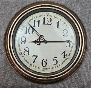 Precioso reloj de pared de estilo vintage. Es de color dorado oscuro con detalles en beige. - Tiene una estética clásica y elegante. - Ideal para decorar cualquier espacio.