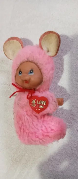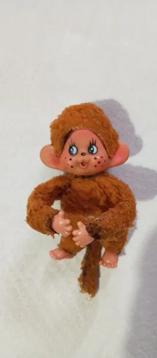 Muñeco Monchhichi original de época. Un clásico para coleccionistas. - Diseño de mono. - Materiales de felpa y plástico.