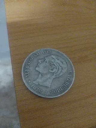Moneda de plata conmemorativa de Alfonso XII. - Año: 1878 - Leyenda: Alfonso XII por la gracia de Dios - Material: Plata