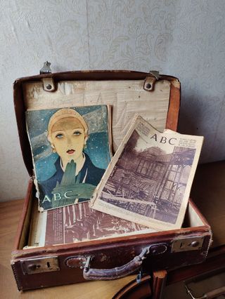 Vendo maleta vintage de cuero con varios periódicos en su interior, muy desgastada y con claros signos del paso del tiempo, lo que le da mucho encanto y carácter. Maleta: - De cuero - Tamaño tipo maletín - Muy usada, con pátina auténtica - Conserva pegatinas antiguas de viajes y alojamientos - Ideal para decoración vintage, escaparatismo, fotografía o atrezzo Contenido: - Incluye periódicos antiguos, principalmente del diario ABC - Fechas que he visto: 1933 y 1959 - Se venden tal cual están, como lote histórico/decorativo Conjunto perfecto para quien busca objetos con historia real, no reproducciones.